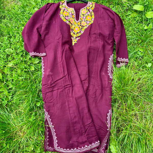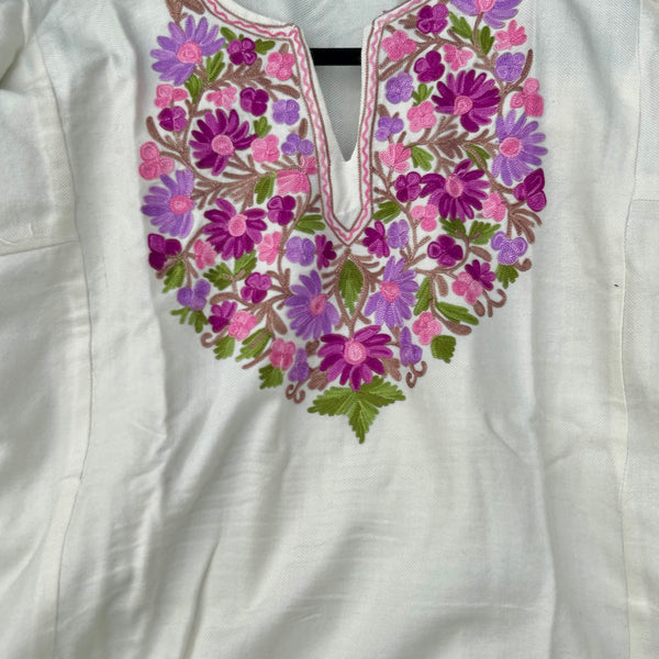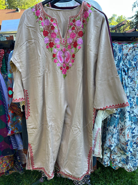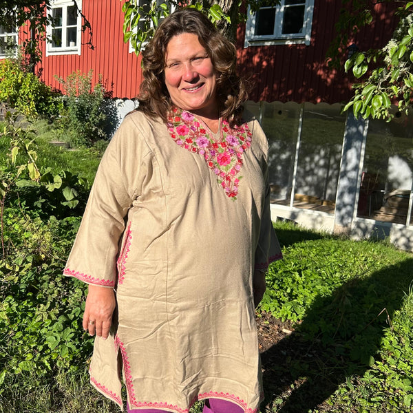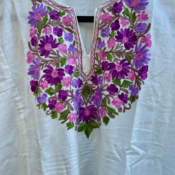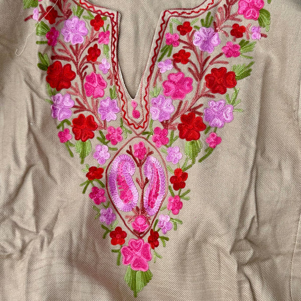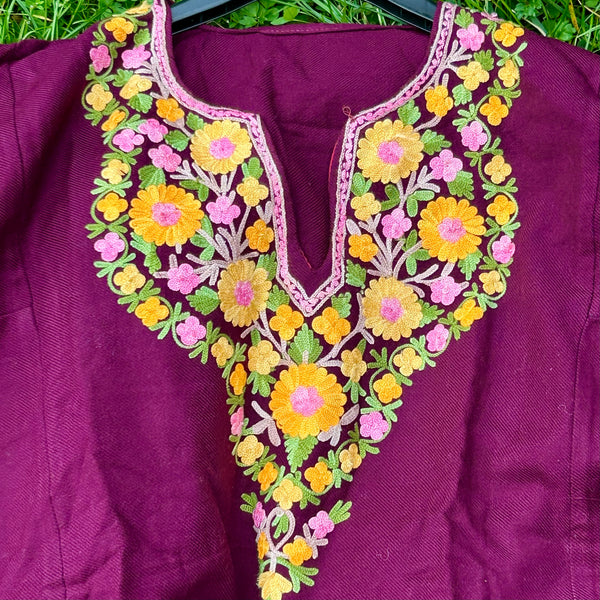 Varm och elegant damponcho från Kashmir med berömt handgjort hokneedle-arbete.